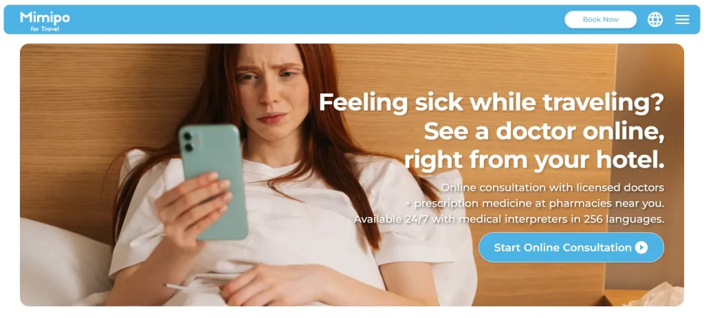外国人向けオンライン診療サービス「Mimipo for Travel」は、医療通訳付きで256言語に対応。相談料は55,000円と高額にみえますが、旅行保険やクレジットカードの保険で払い戻されるため、安心して紹介できます。