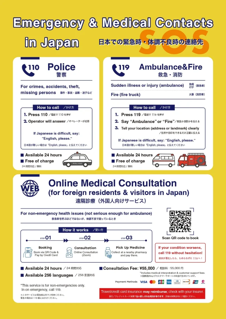 外国人ゲストは、日本の医療システムや緊急時の連絡先を知りません。